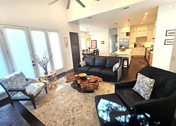 El East Elizabeth St Main Home es un acogedor alojamiento en el vibrante distrito de South Austin. Este refugio te ofrece un ambiente acogedor, complementado con aire acondicionado y conexión Wi-Fi gratuita, ideal para disfrutar de tu tiempo en la capital de Texas. Con una proximidad inigualable, estarás a solo 2.5 km de la famosa Barton Springs Pool, un lugar perfecto para relajarte y tomar el sol. Situado a solo 4 km del Texas Memorial Stadium, la ubicación te permite explorar fácilmente los lugares más emblemáticos de la ciudad. Además, South Austin es famosa por su belleza natural y sus espacios verdes, como el Centro de Flores Silvestres Lady Bird Johnson, que destaca por su colección de plantas nativas de Texas. El aeropuerto internacional Austin-Bergstrom se encuentra a 9 km, facilitando tu llegada y salida.